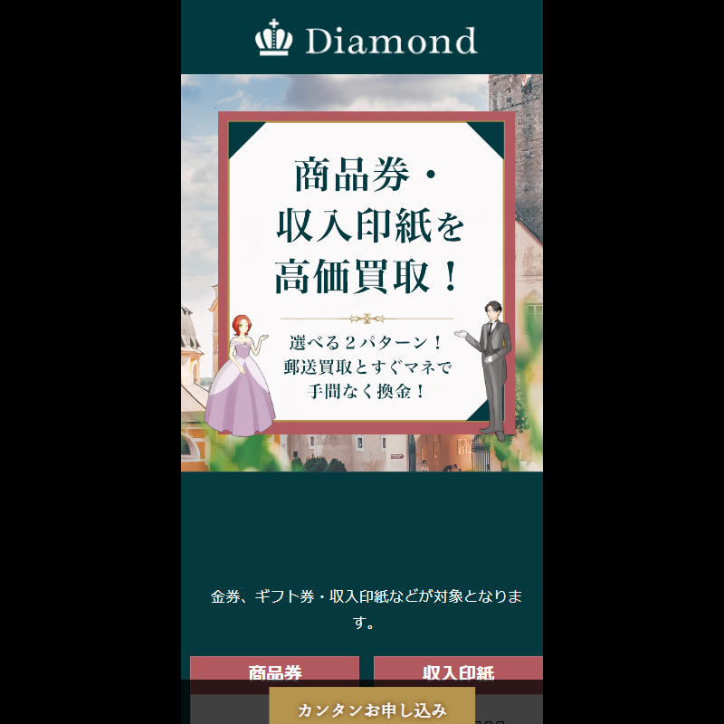 ダイヤモンドは、売りたい商品券や収入印紙などの買取査定を行ってくれる買取業者です。